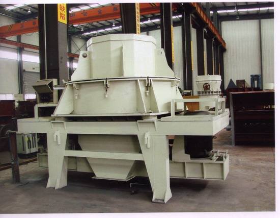 然后以60-70米/秒的速度从叶轮三个均布的流道内抛射出去,首先由分料器四周自收落下的一部分物料冲击破碎,然后一起冲击到涡支腔内物料衬层上,被物料